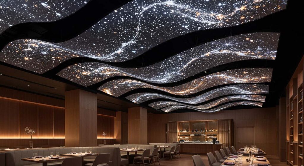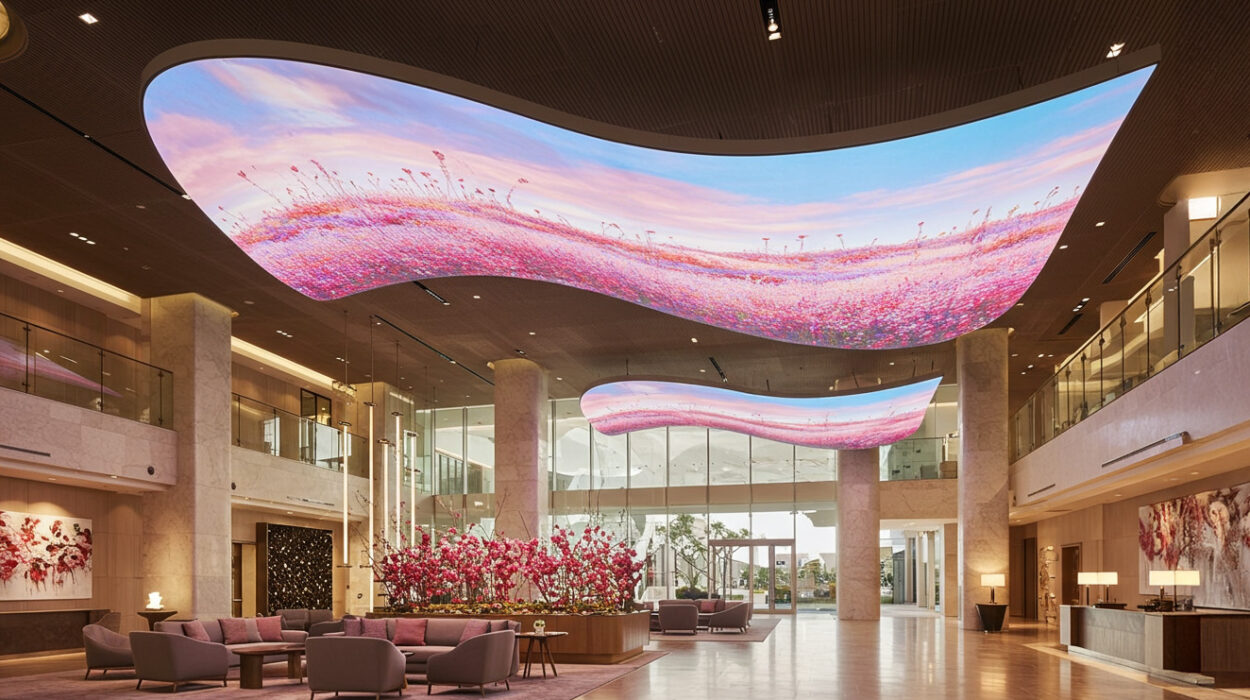 Large eye-catching spaces, requiring high resolution - fixed wall-mounted displays,